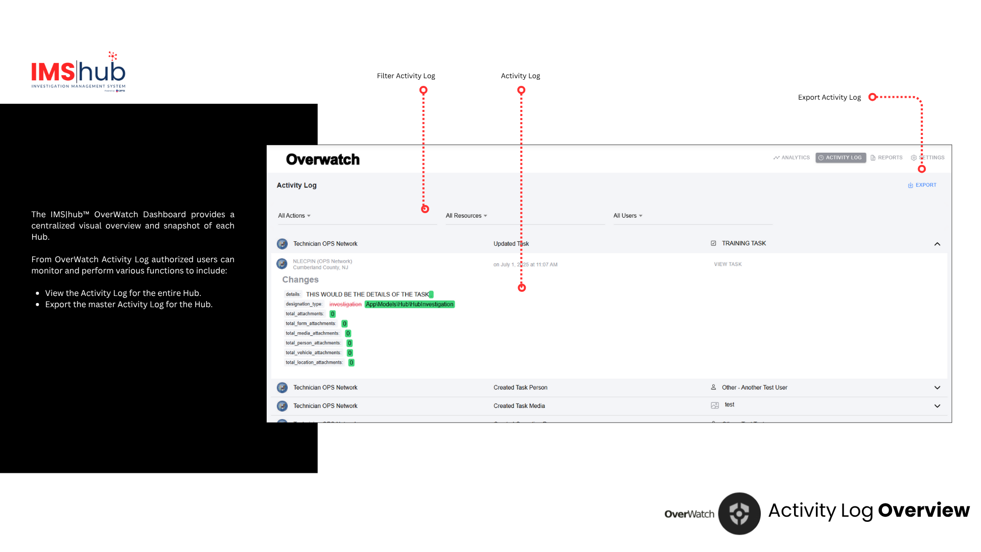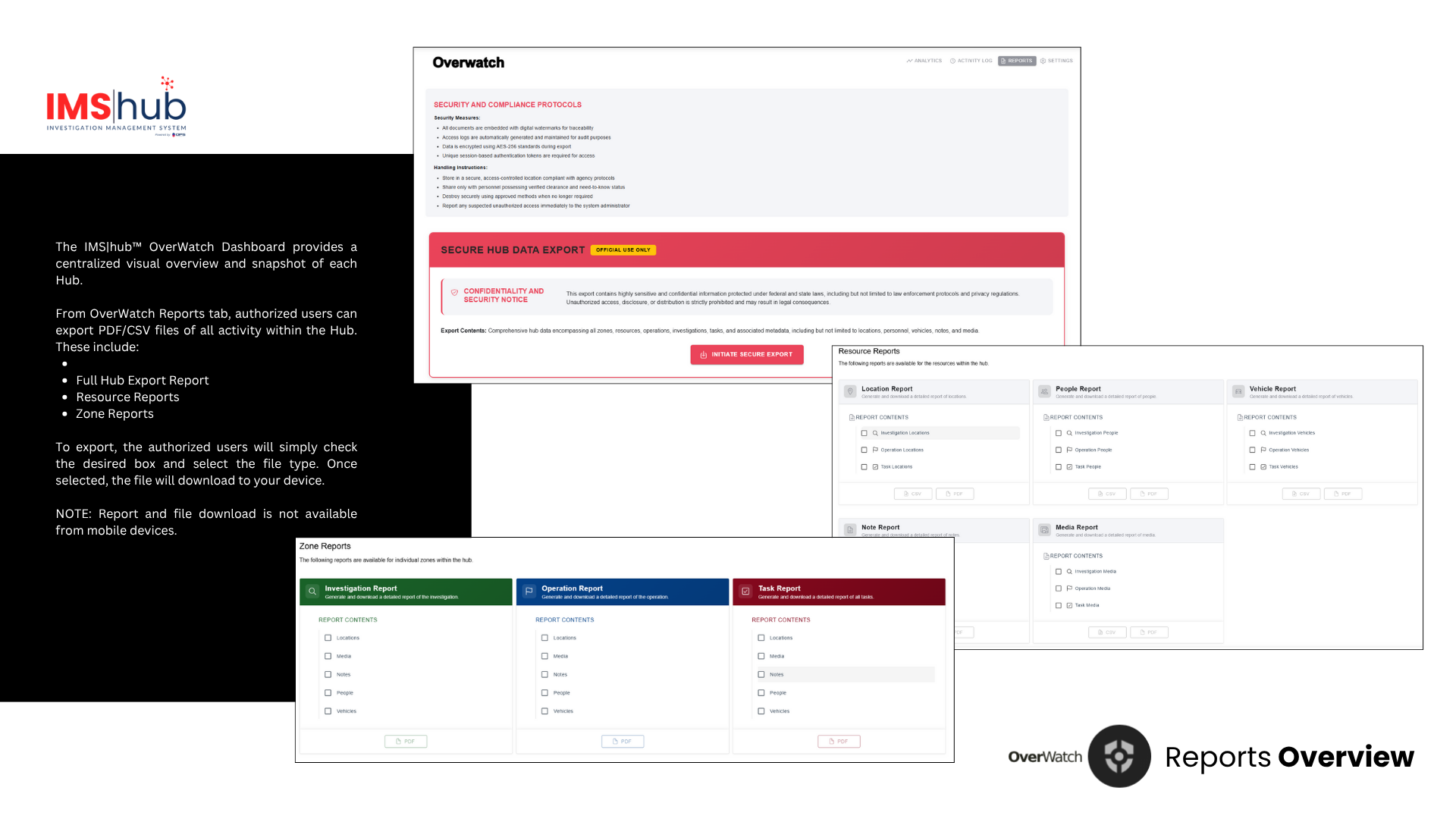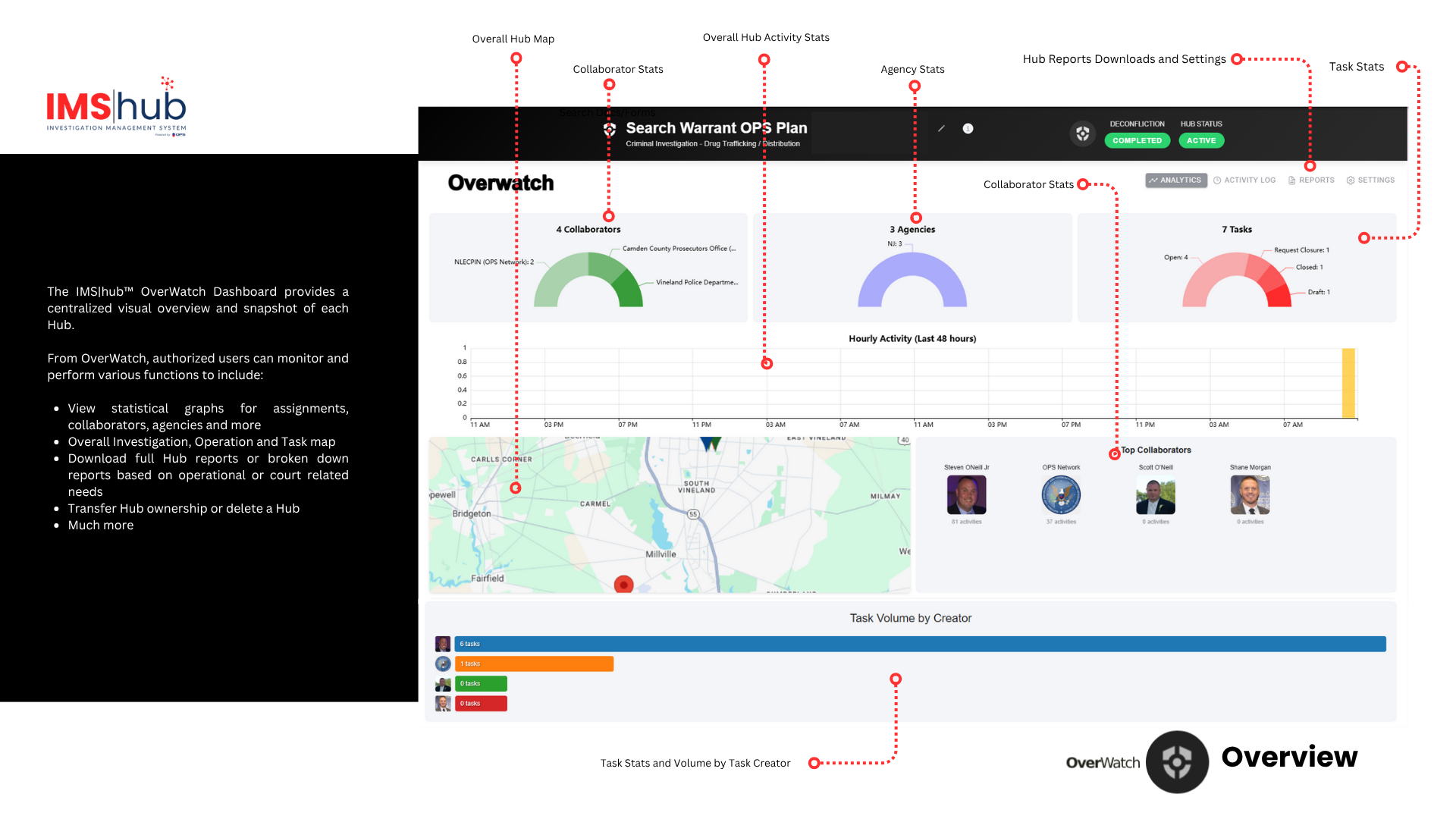 The IMS|hub™ OverWatch interface provides a graphic and statistical overrview of any investigation and/or operation.