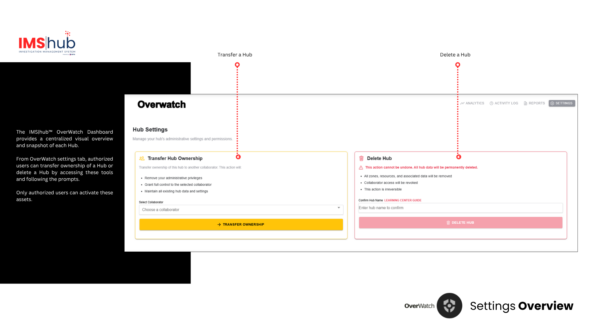 Printable IMS|hub™ asset overview sheet explaining the feaures of the platform.